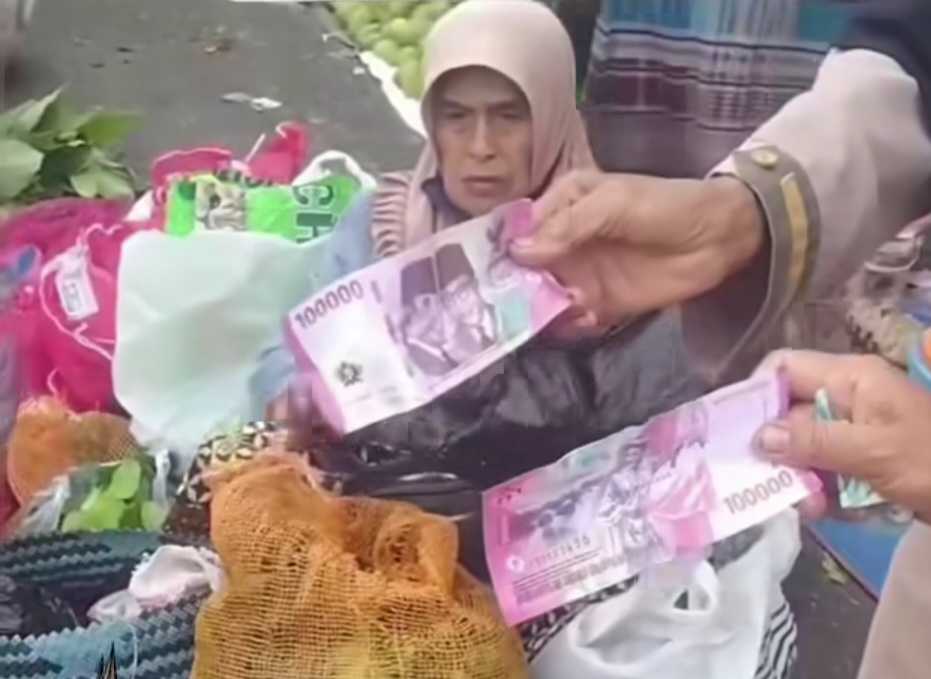 “Iya, Pak. Tadi ada ibu-ibu pedagang yang mendapatkan uang palsu pecahan seratus ribu dari orang yang tidak dikenal,” ujar Tini.