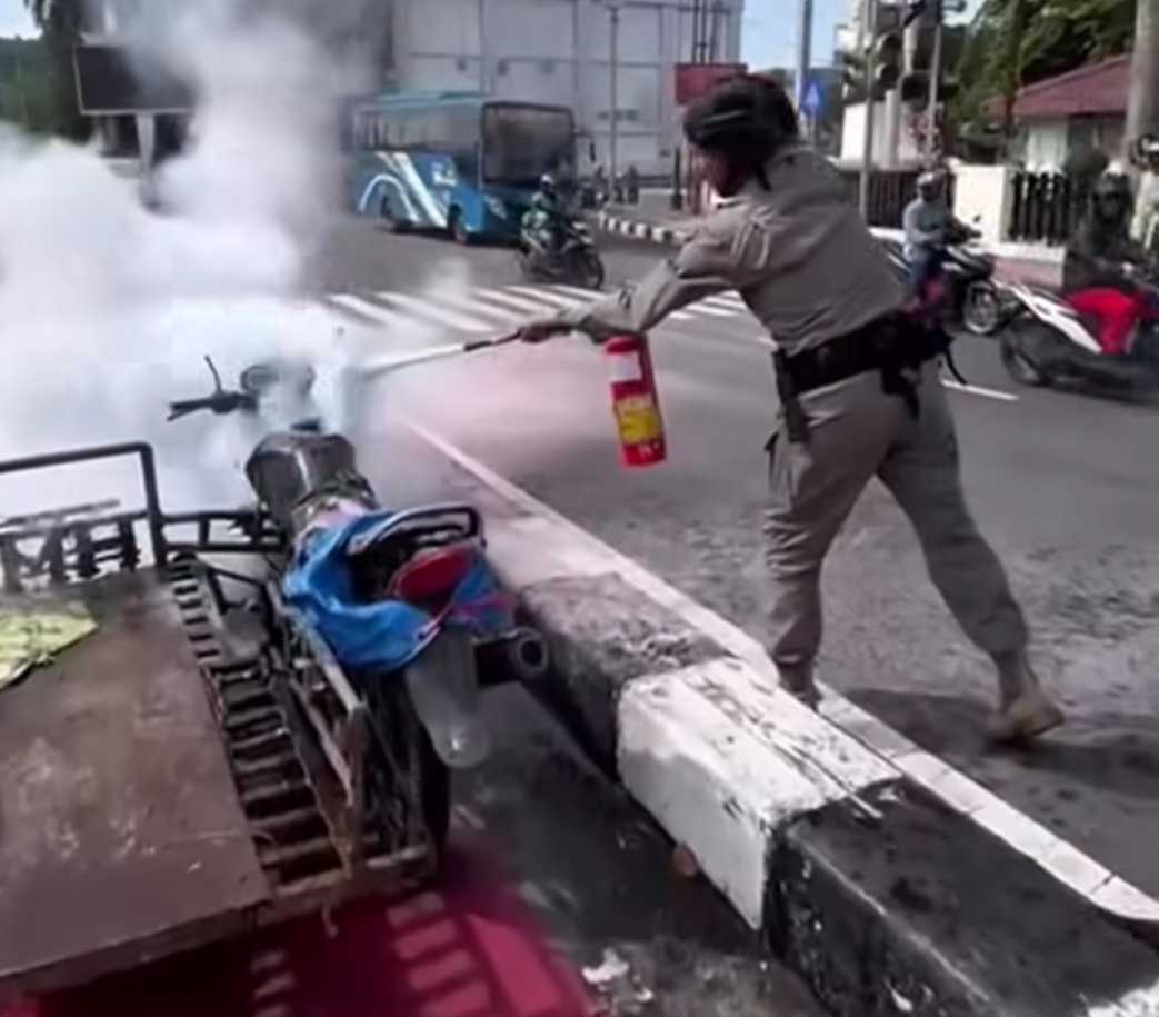 Kebakaran disebut bermula ketika becak motor tersebut sedang berhenti di tepi jalan. Asap tebal pertama kali terlihat keluar dari bagian mesin sebelum api mulai membesar.