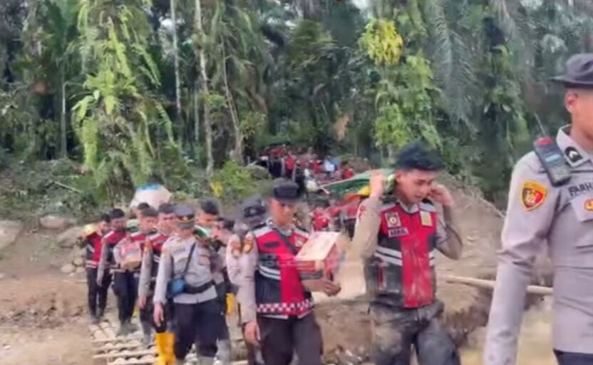 Rangkiangsumbar – Personel Direktorat Samapta (Ditsamapta) Polda Sumatera Barat mengantarkan bantuan logistik kepada warga yang terjebak dan terisolasi akibat bencana tanah longsor di sejumlah titik di Provinsi Sumatera Barat.
