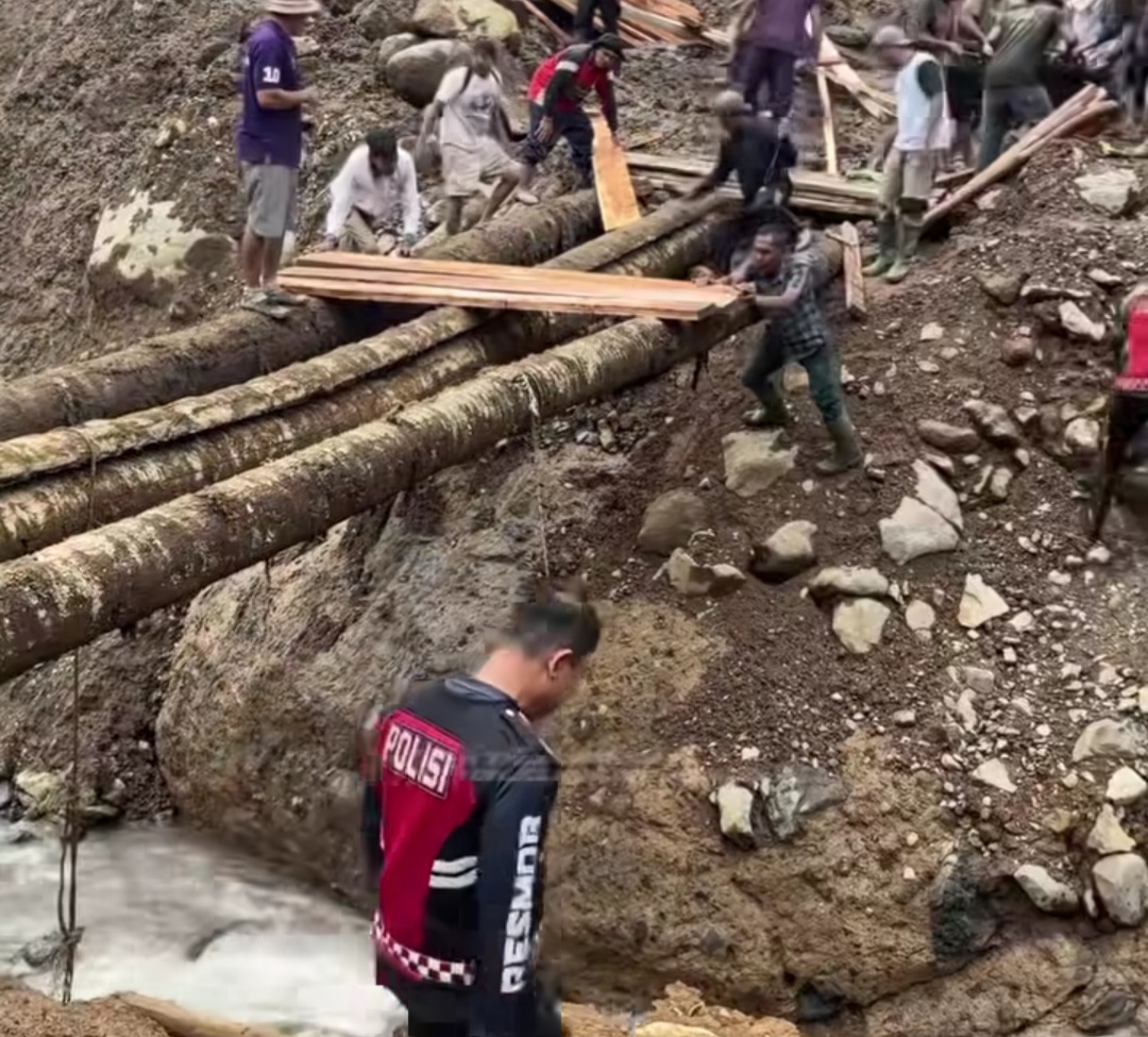 Jembatan darurat itu dibangun untuk membuka kembali akses warga yang sempat terputus akibat terjangan banjir dan material longsor.