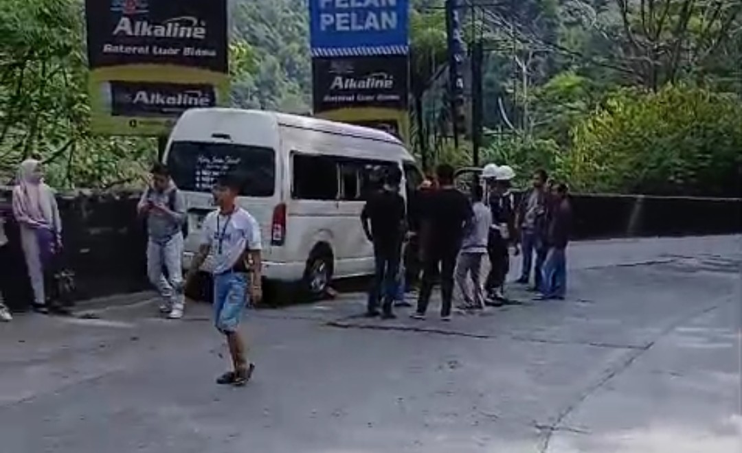 Saat melintasi jalur menurun dan berkelok, sistem pengereman kendaraan diduga tidak berfungsi dengan baik sehingga pengemudi kehilangan kendali.